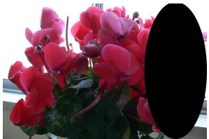 突然、暗幕がおりてきた。見ているものの一部が見えない。