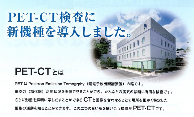PETは日本語では『ポジトロン断層撮影法』と呼ばれています。PET-CTを用いた腫瘍診断には大掛かりなサイクロトロンで合成するブドウ糖と非常に類似した特別な薬剤を使用します。がん細胞は、正常の細胞と比較して3~8倍のブドウ糖を消費して繁殖します。また悪性ながんほどその消費は増えます。この現象を利用して、がんの発見や悪性度の診断を飛躍的に向上させたのがPET-CTという検査です。つまり、PET-CTはこれからの「がん」診断には欠かせない検査といえます。